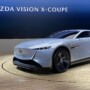 Gleiches gilt für den Antrieb. Unter der Haube des Cross-Coupés steckt ein Zweischeiben-Wankelmotor mit Turboaufladung, ausgelegt als Plug-in-Hybrid. Die Systemleistung beträgt 375 kW/510 PS, die Batterie erlaubt eine elektrische Reichweite von rund 160 Kilometern. Insgesamt kommt das X-Coupé so auf 800 Kilometer Reisedistanz. Mazda ist dabei, den Wankelmotor fit für die Zukunft zu machen, besonders im Hinblick auf die strengen Abgasgesetze wie EU7 in Europa und LEV4 in den Vereinigten Staaten.